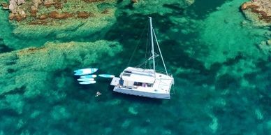 Catamaran exclusive tour to discover the "Îles Lérins", its abbey and vineyards, a jewel of the Mediterranean coast.